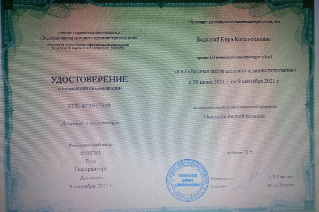 Коллектив детского сада «Белек» прошли дистанционное обучения на тему: «Оказания первой помощи» в объеме 72 часов. Свои знания они закрепили на семинаре.